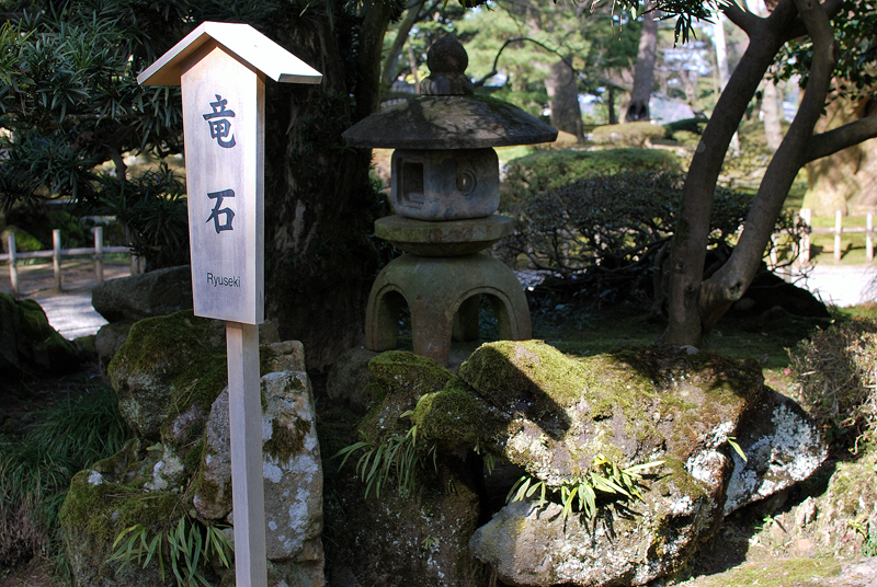 陽光が樹々の枝をすり抜け苔むした岩の上に金色の斑を落とすこの一帯には、時を超えた静寂が横たわっている。名を与えられし龍石は水の神殿のごとく鎮座し、地の底を流れる龍脈の力を秘めている。表面は幾星霜を経て深い緑の苔に覆われて、時間が織りなしたビロードの衣をまとっているかのようだ。かたわらに立つ石灯籠に雨風の痕跡が刻まれ、そのたたずまいは数多の朝霧と夜露を受け止めてきた歴史を物語る。火袋は今光を宿さずともその空洞に庭園の息吹を吸いこみ古の物語を語り継ぐ。苔の隙間からはシダの若葉が慎ましく顔を出し、湿潤な闇から光へと向かう生命のかすかな息吹をささやく。それは厳格な石組の秩序の中にあるささやかな自由の象徴か。木漏れ日の短い滞在が岩肌の起伏を際立たせ、影と光の劇的なコントラストを生み出す。ここは人が手を入れ自然が時間をかけることで完成した動かぬ美の聖域か。一歩踏み入れば龍の息遣いさえ聞こえてくるかのような深遠な趣が満ちている。