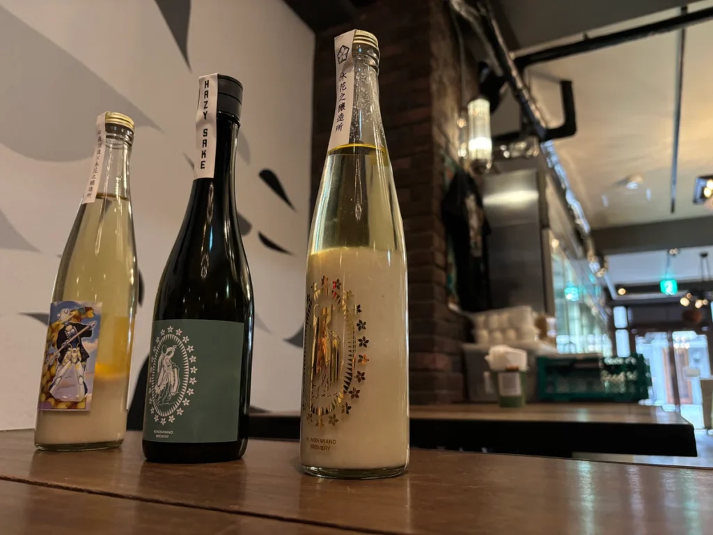 利き酒セットを注文。お正月のような雰囲気をしみじみ感じました。スゴイですよ。この店で作ってます。定番銘柄ハナグモリは爽やか。さらに、ホップを使ったどぶろくと、柚子風味のどぶろくです。