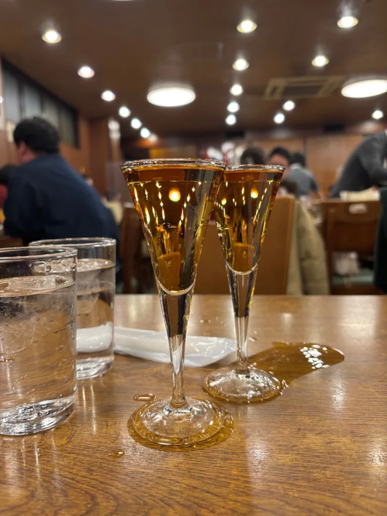 恒例の神谷バーで電気ブラン。500円。ラストオーダー近くで少しだけ空いてました。