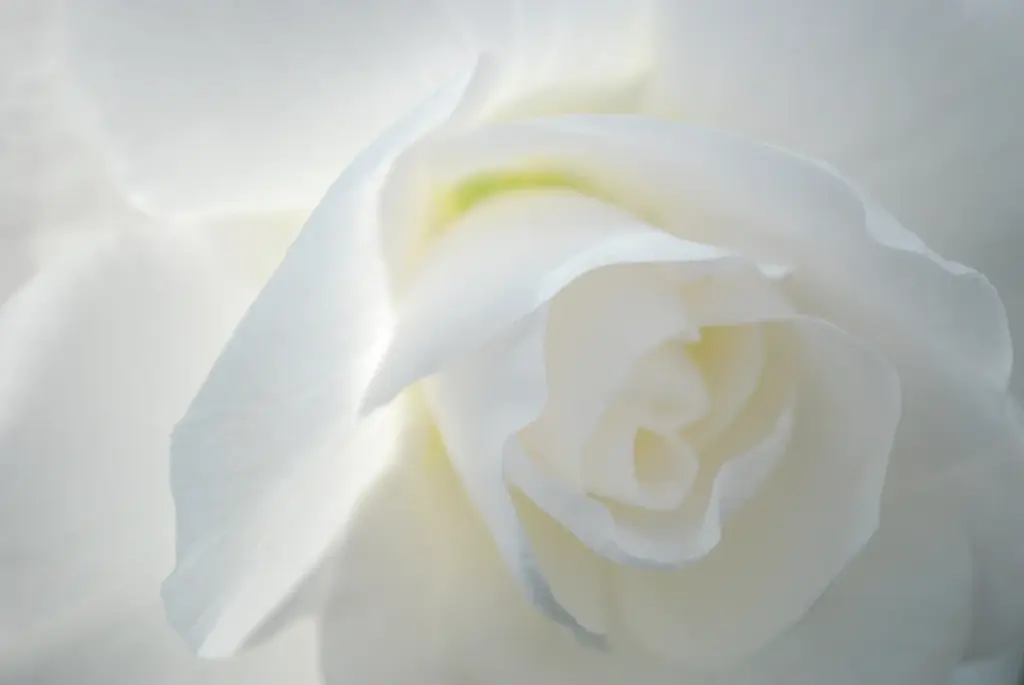 静寂が、音もなく空から降りてくる夜。世界からすべての色が洗い流されて、白と黒のインクで描かれた物語が始まる。その物語の主人公は、あなた。月の雫を幾重にも重ねて、そっと形づくられた白い薔薇。一枚一枚の花びらは、薄絹のようでいて、触れることさえためらうほどに繊細な磁器のよう。光を吸い込んでは、内側からほのかに発光し、自らが淡い光源となっている。中心に近づくほど、花びらは秘密を抱くように身を寄せ合う。そこには、まだ誰にも語られていない夢や、遠い日の優しい記憶が、ひそやかに渦を巻いているのだろう。わずかに開いたその隙間から、甘く、清らかな香りが漏れ出して、記憶の扉を静かにノックする。それは、忘れかけていた約束の香り。遠い夏の日、木漏れ日の中で交わしたささやき。あるいは、雪の降る夜に、窓辺で温めた手のぬくもり。この薔薇は、過ぎ去った時をすべて知っている。幸せも、痛みも、その純白の中に溶かし込んで、ただ静かに、今ここに咲いている。闇は、あなたの白を際立たせるための舞台。孤独ではなく、気高さを纏うためのビロードの夜着。一輪だけで完結するその姿は、どんな言葉よりも雄弁に、凛とした魂のありかを教えてくれる。ああ、どうかそのままで。夜が明けるまでのつかの間、この世で最も美しい沈黙として、私の心の中に咲き続けていてほしい。あなたの白が、私の心の闇を、そっと照らしてくれるから。