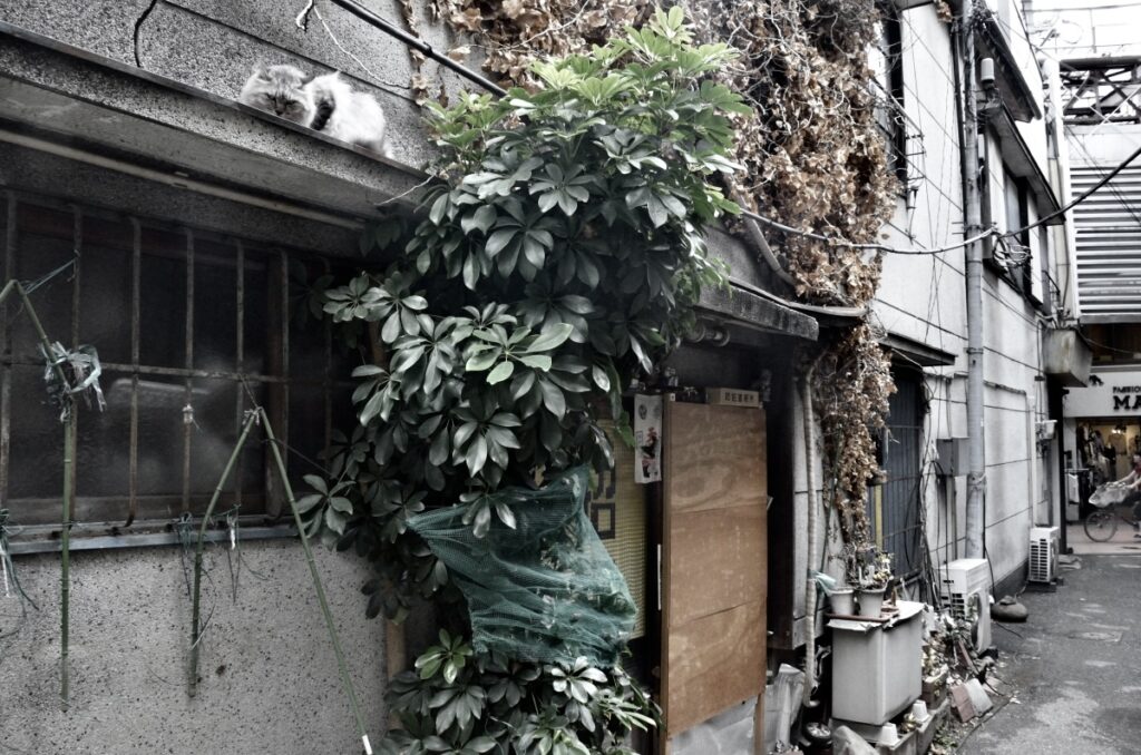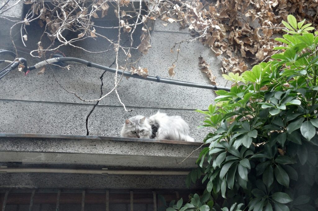 静かに一礼するように頭を下げ、来た道をゆっくりと歩き始める。私が数歩進んだ、その時、背後で、コンクリートを爪がこするかすかな音がした。高台の猫がゆっくりと豪奢な体を持ち上げていた。彼は先ほどまでの石像のような姿勢から、四肢でしっかりとコンクリートの上に立ち上がり、豊かな尾を空に向かって高く掲げ、左右に優雅に揺らした。長時間の瞑想から覚めた修行僧のようだった。彼は私の方を一瞥すると、すぐに背後の枯れ蔦の壁を背に、右側へとしなやかな体つきで歩みはじめた。足取りは軽く、彼がこの場所の地形を熟知していることを示している。彼は頭を低くし、長い毛皮を揺らしながら視界から消えようとしたが、ちょうど建物の角にさしかかる直前、何かを思い出したかのように、再び私の方へ振り向いた。薄い緑色の瞳を私に固定したまま、低く響く一言を投げかけたのである。