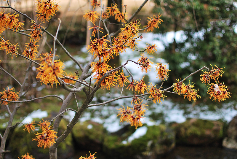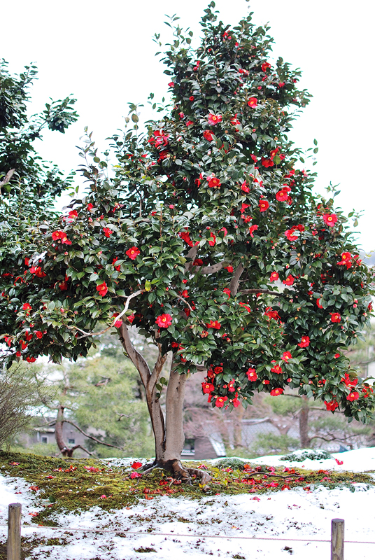深緑の葉間に戯れる斑の白と紅、その色彩は光をまとい微かに揺れ動く命の歌。秋めく背景の茜色を遠くに映し、足元の土に根差す姿は静かなる強さを秘める。絡み合う蔓葉は時の流れを編み、生け垣の境界線に優美な詩情を紡ぎ出す。木漏れ日の陰影が織りなす幻想的な景色は、見る者の心にそっと安らぎを届けている。
