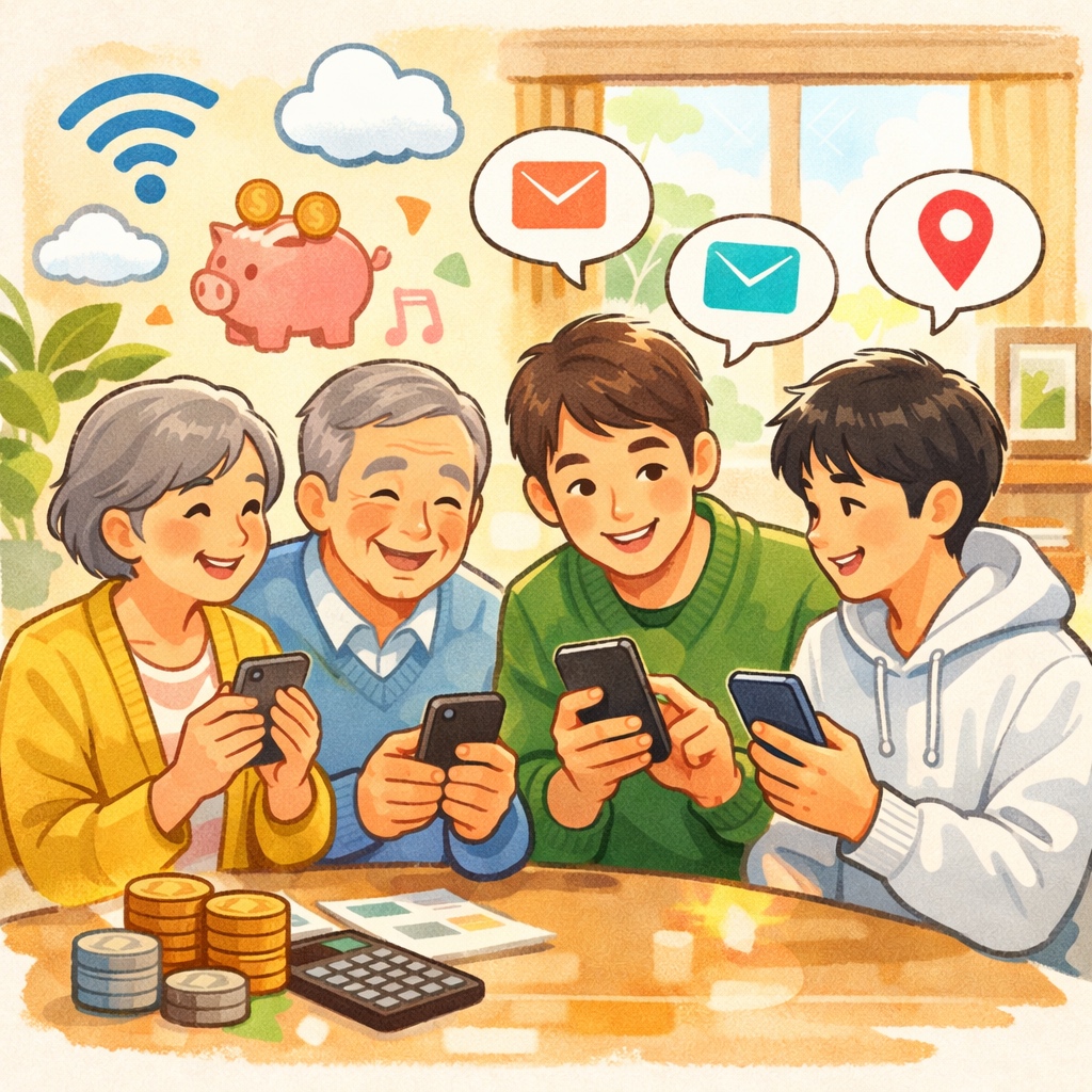 特筆すべきは、同じスマホを使う祖父母と孫が互いに教え合えるようになったこと。家族全員が同じ携帯会社なら、分からないことをすぐに相談できる安心感があります。