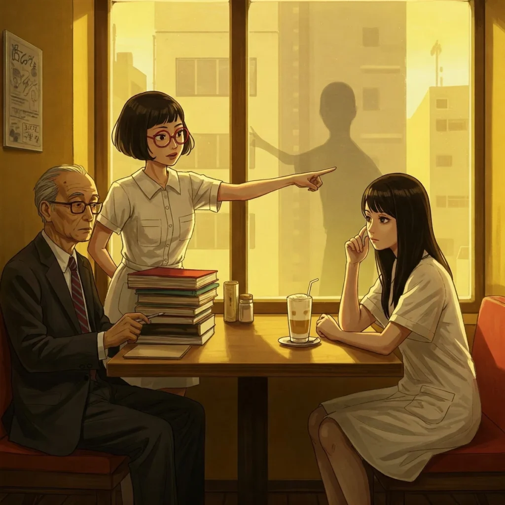 御茶ノ水のおしゃれなカフェの窓際に3人の男女が座っている。1人はボブの白いワンピースを着た、日に焼けて快活なモヤちゃん。窓際にはストレートロングヘアの色白でスラリとした涼子。その正面にメガネをかけたスーツ姿の初老の男性。この男性こそが鈴木教授だった。彼は積み上がった論文の陰に隠れるように座っていた。論文の山は、彼を現実世界から隔てる防波堤のようだ。淡い黄色の照明の下、教授の顔には深い隈が刻まれ、かつての精悍さは見る影もなかった。彼の研究「現代日本における都市伝説の社会学的考察:カラスの囀りから影の踊りまで」は、今や学内では嘲笑の的。研究費は打ち切られ、学会からも相手にされず、孤独な研究の日々を送っていた。唯一の話し相手は涼子とモヤちゃんだけ。後期に入り、ゼミに来る学生は涼子とモヤちゃんだけになってしまった。彼女たちは教授にとって最後の希望だった。
