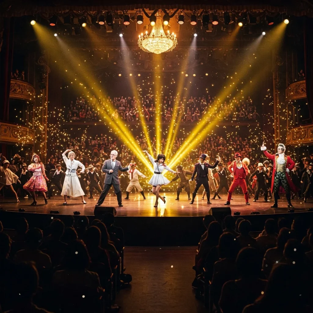 ダンスホールが暗闇に包まれて、フッと照明がつくと、そこは巨大な劇場。シャンデリアが放つ幻想的な光が、天井から滝のように降り注いでいた。客席には数千の観客が固唾を呑んで見守り、その熱気が会場全体を包みこんでいた。舞台上には最先端の照明装置が配され、光と影が交錯する神秘的な空間が創り出されていた。マスタータンゴは舞台袖で、荘厳な声で宣言した。